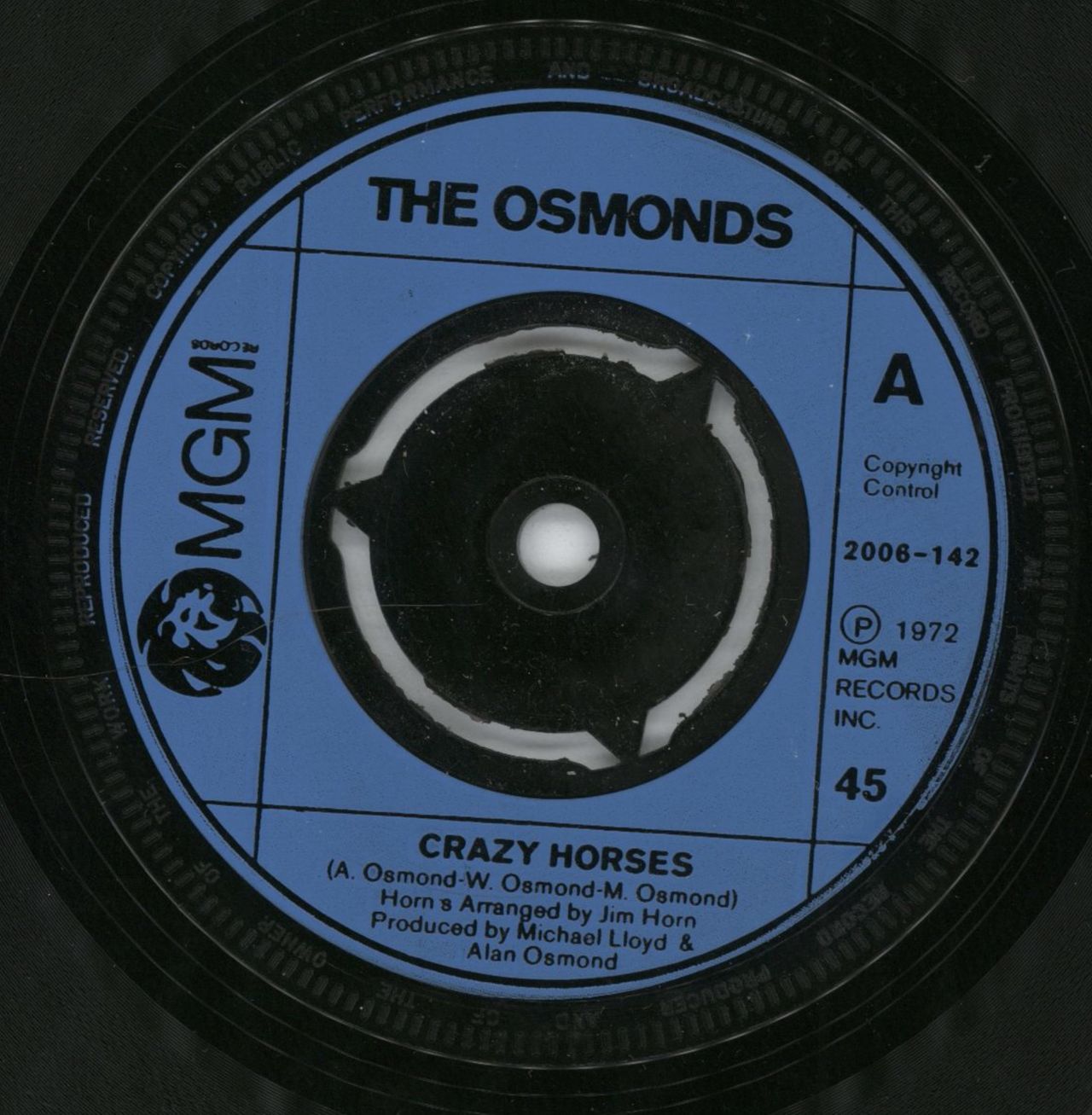 THE OSMONDS Crazy Horses (1972 UK blue injection moulded