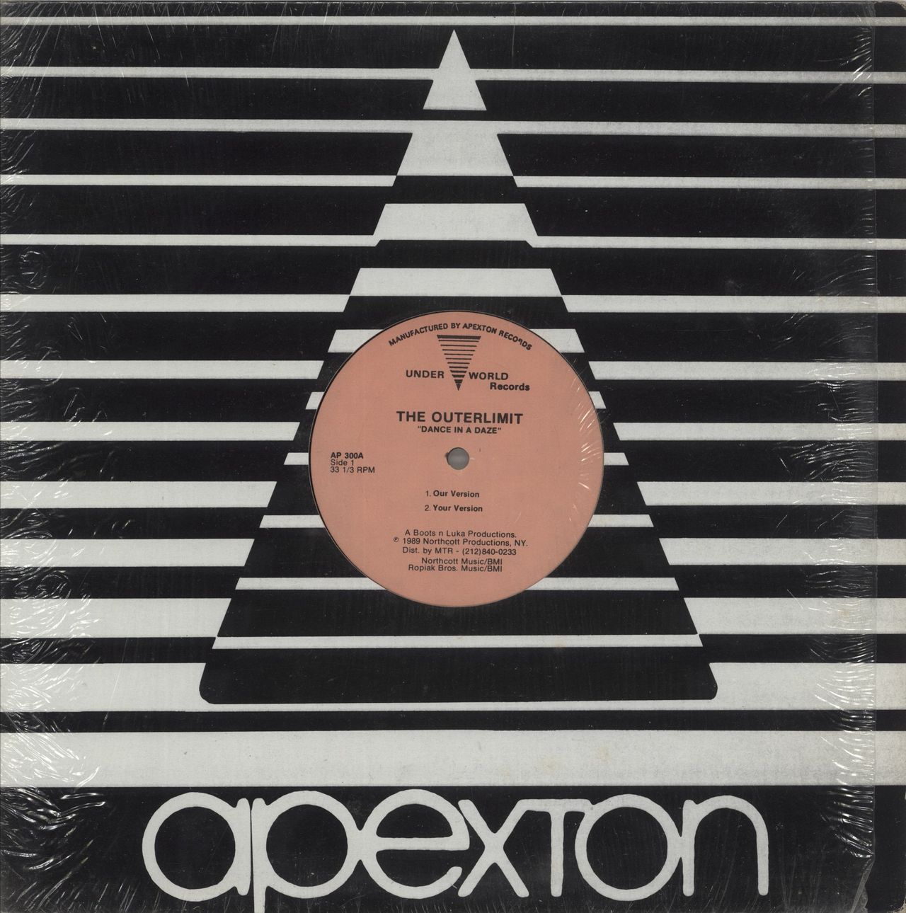 THE OUTERLIMIT Dance In A Daze (Rare 1989 US 4-track 12" single, die-cut company sleeve. Classic underground acid/warehouse tune and a big spin from the likes of Jeff Mills, Derrick May et al, still sounding fresh 36 years on. The vinyl is a strong VG with some light hairlines in places not affecting play - recommended AP300)