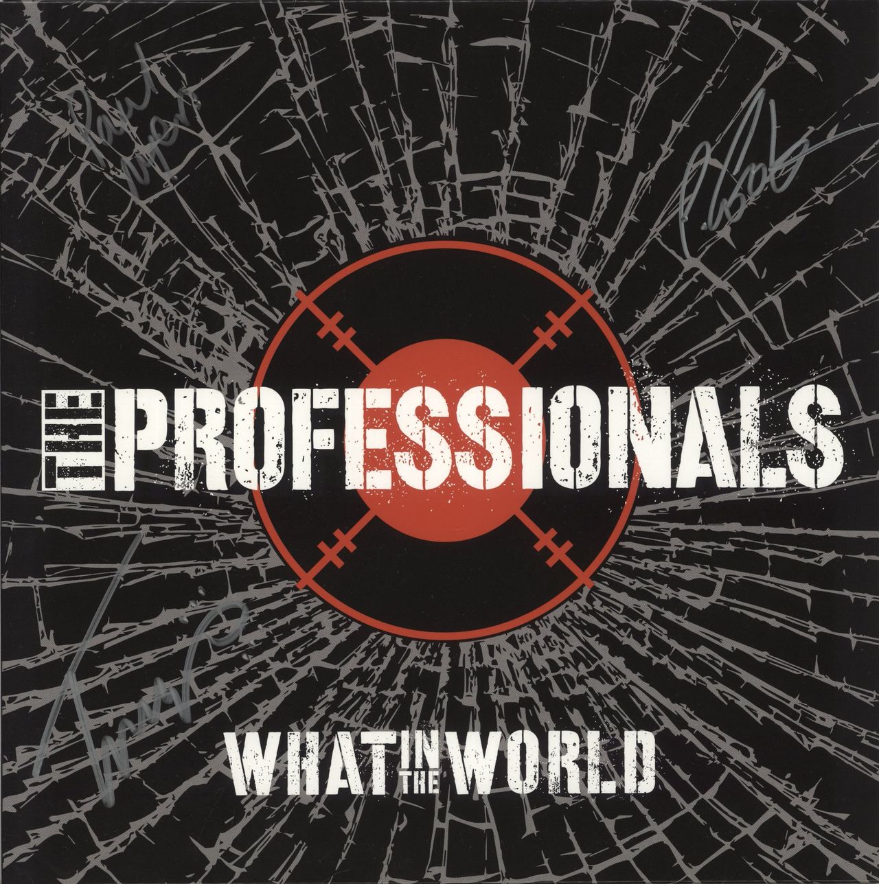 THE PROFESSIONALS What In The World (Autographed 2017 UK limikted edition 10-track vinyl LP, housed in a picture sleeve with lyric printed insert. The sleeve displays mininal wear and the vinyl remains in Near Mint condition. The sleeve shows just a couple of edge creases but has been fully signed by Paul Cook, Paul Myers and Tom Spencer across the front in a silver marker pen, ideal for framing!)