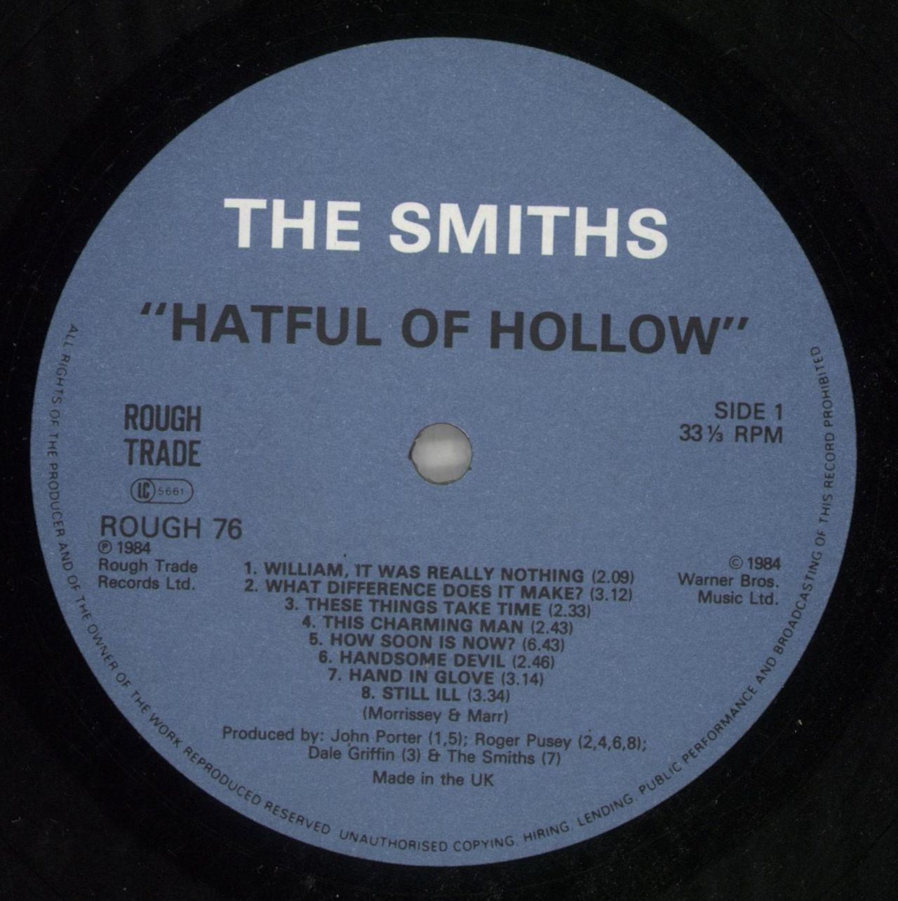 THE SMITHS Hatful Of Hollow (1987 UK second issue 16-track vinyl LP, complete with lyric inner, single pocket picture sleeve. The sleeve shows minimal storage wear with no splits or rips, whilst the vinyl shows a few light signs of play, overall an Excellent example making an ideal play copy ROUGH76)