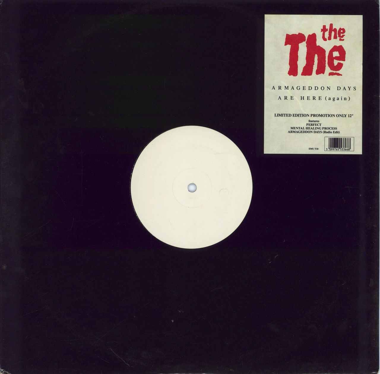 THE THE Armageddon Days (Scarce 1989 UK limited edition promotional vinyl 12" for the single release from their 'Mind Bomb' album, including the Album Version and Radio Edit plus 'Perfect' and 'Mental Healing Process', housed in a plain die-cut sleeve with tracklisting-sticker attached. The vinyl has only a few light signs of play, an Excellent example EMUT10)