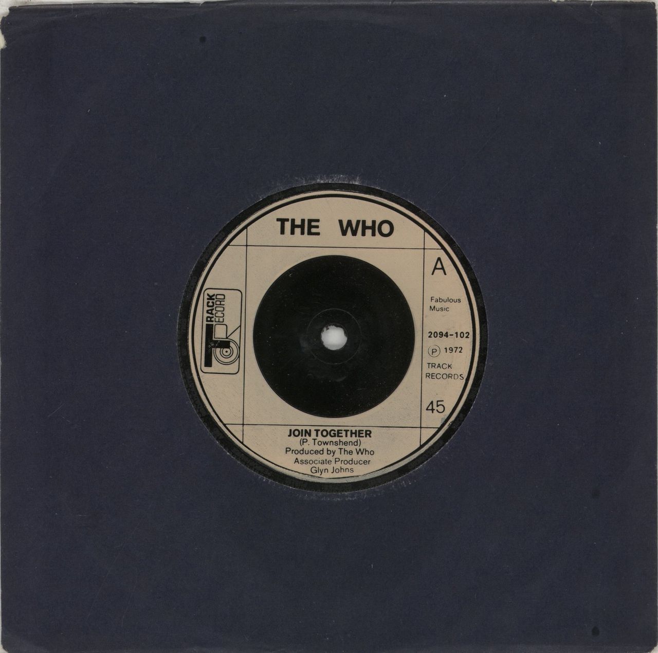THE WHO Join Together (Mid 1970s UK injection moulded cream 7" vinyl single, also including Baby Don't You Do It, plain die-cut paper sleeve)