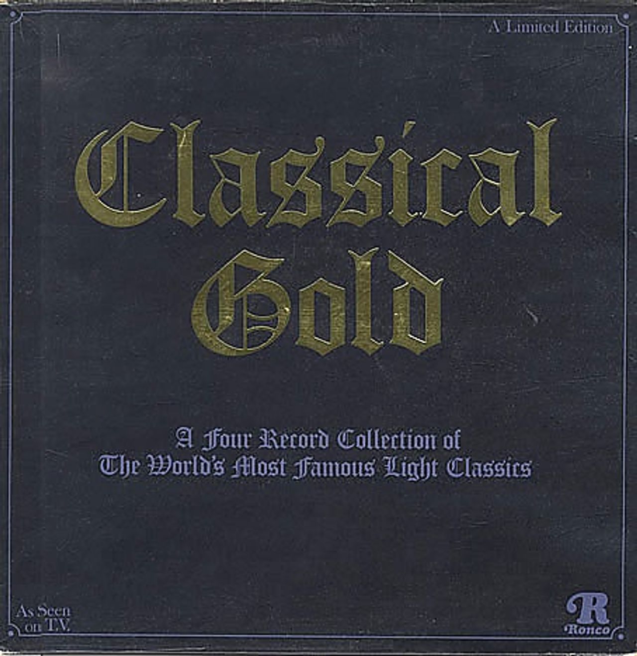 THE ROYAL PHILHARMONIC ORCHESTRA / VARIOUS Classical Gold (1976 UK limited edition 43-track set of four LP volumes : 'Concert Favourites', Waltzes & Serenades', 'Overtures, Concertos & Symphonies' & 'Romantic Harmonies & Symphonic Dances', predominantly by The London Philharmonic Orchestra conducted by Douglas Gamley, but with guest orchestras too. Each volume is in its own picture sleeve & all four are enclosed in an outer textured gold embossed box. The box shows just some general shelfwear with a bit of edge scuffing & all contents remain in superb condition RTD-42020)