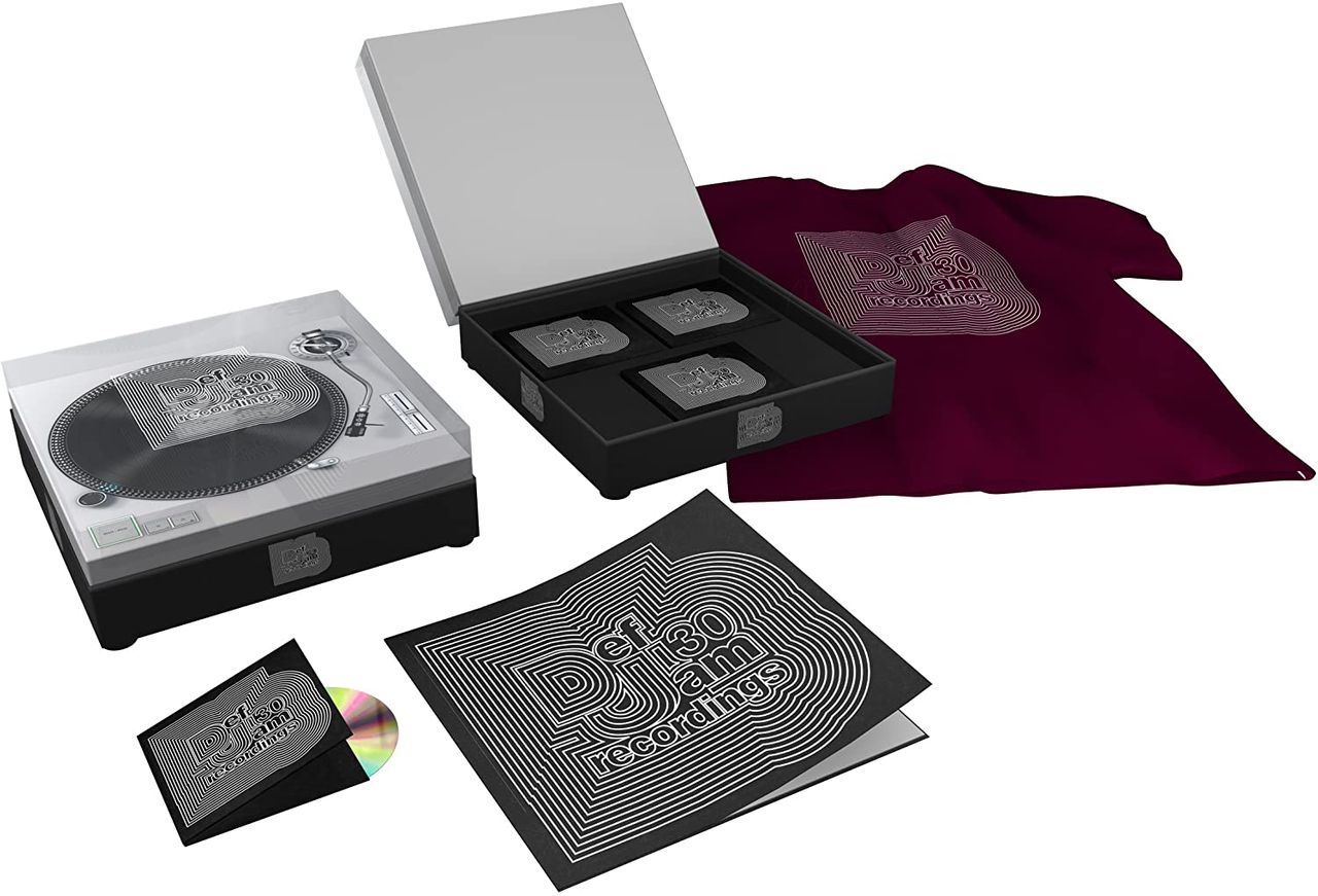 VARIOUS Def Jam Recordings 30th Anniversary (2014 US limited edition individually numbered 3-CD box set, containing 30 years of the music, from their beginnings of The Boogie Boys, Crash Crew, and Afrika Bambaataa. To the very important Run DMC, LL Cool J, Public Enemy, Slick Rick days. And the last 10 years Cam’Ron, The Roots, Kanye West, Rick Ross, and Jay Z with all cuts hand picked by Rick Rubin himself. The box itself looks like a classic turntable with a dust cover with an individually numberd sticker on the bottom with this example numbered 55, also including a 16 page booklet written by Dan Charnas along with a commemorative Extra Large sized burgundy coloured cotton t-shirt with exclusive 30th anniversary graphics printed across the chest. This copy remains in the orignal card mailer box)