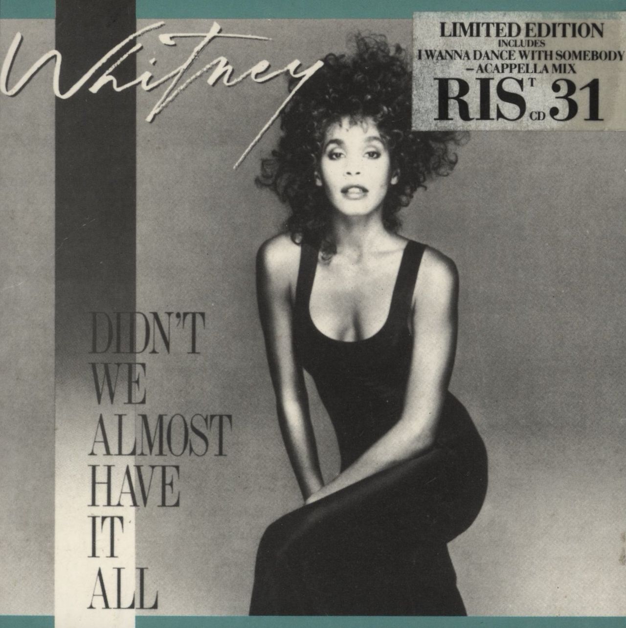 WHITNEY HOUSTON Didn't We Almost Have It All (Rare original 1987 German manufactured limited edition 3-track CD single including I Wanna Dance With Somebody Acappella & Shock Me with Jermaine Jackson, housed in the original hype stickered glossy card wallet picture sleeve RISCD31)