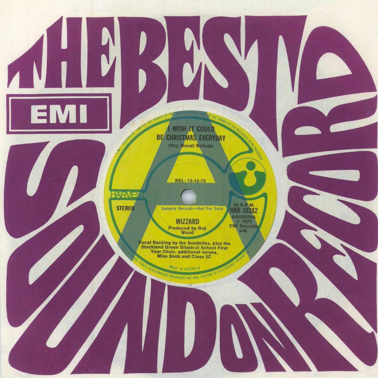 WIZZARD I Wish It Could Be Christmas Everyday (1973 Australian 'A' label sample vinyl 7" for the single release, with a solid centre printed with the release date '13-12-73', also including Rob Roy's Nightmare (A Bit More H.A.), housed in the original 'The Best Sounds On Record' EMI Australia die-cut company sleeve. Apart from some light foxing on the B-Side label, this example remains in a 'near mint' condition HAR-10382)