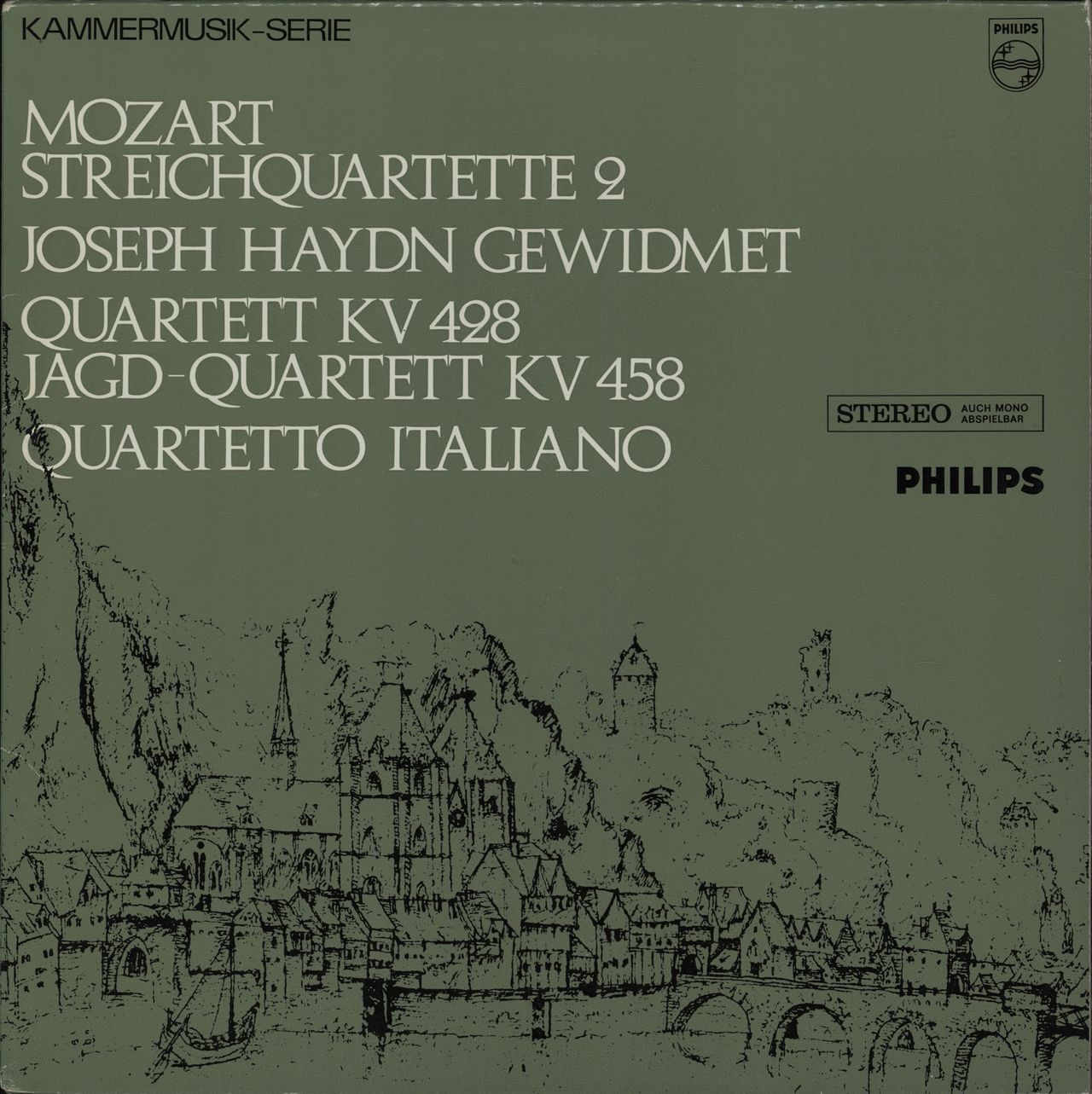 MOZART String Quartet in E flat, K.428 & String Quartet in B flat, K.458 "The Hunt" (1967 Dutch 8-track stereo LP, front laminated picture sleeve with sleeve notes. The sleeve shows minimal wear and the vinyl is Near Mint SAL3633)